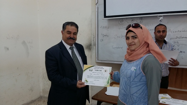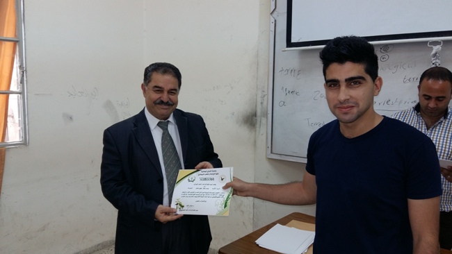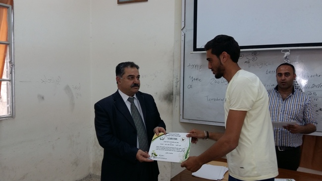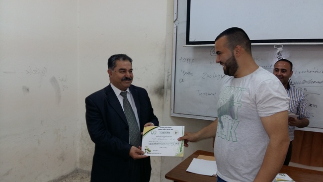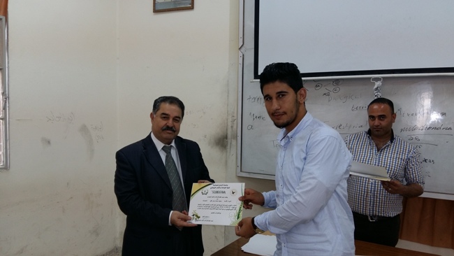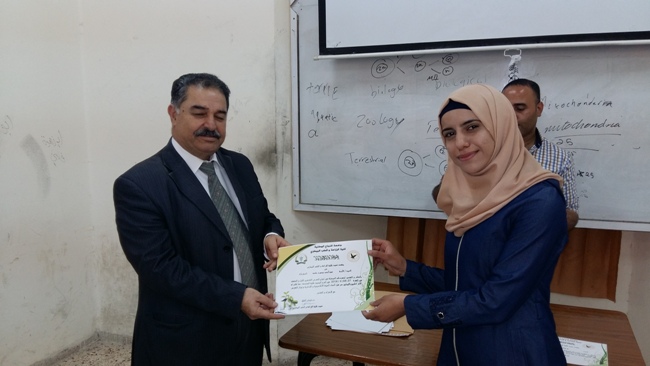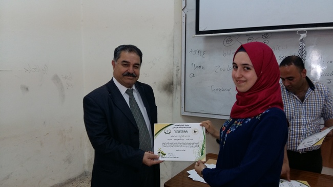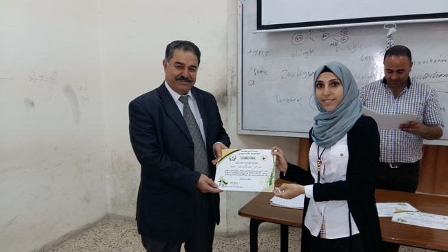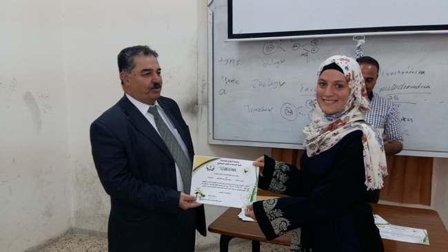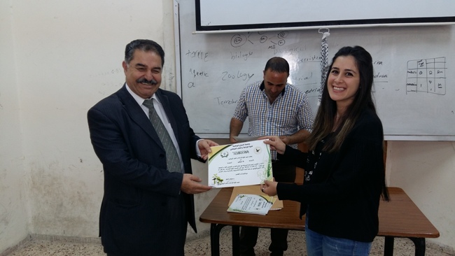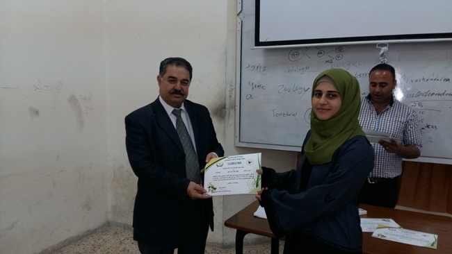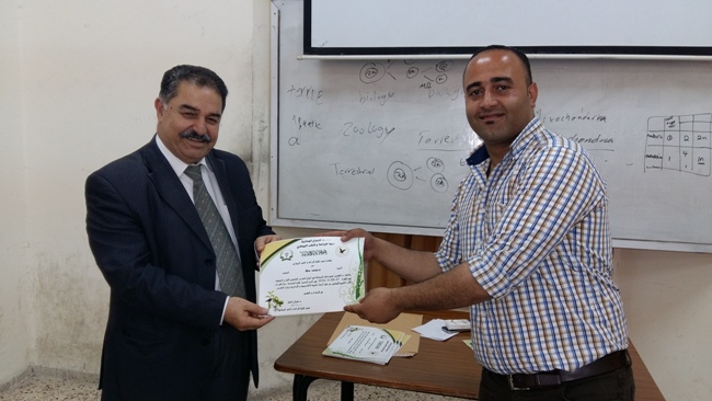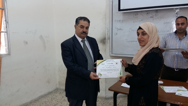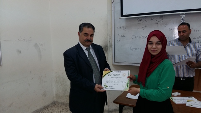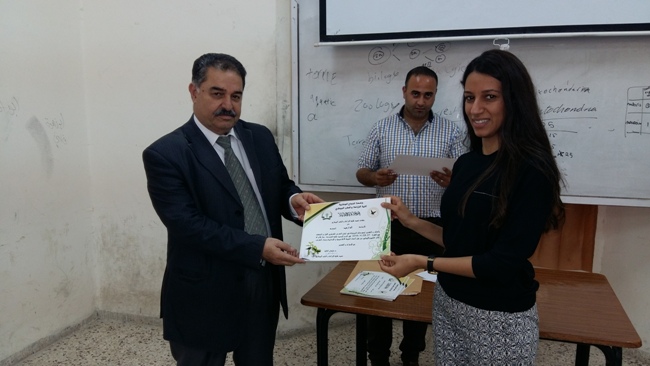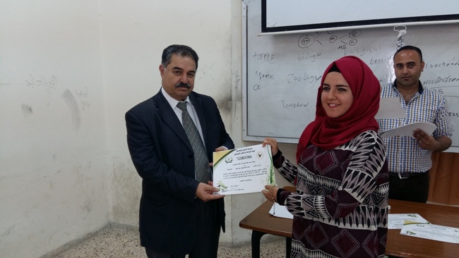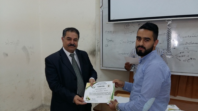قام عميد كلية الزراعة و الطب البيطري د. سليمان الخليل بتكريم القائمين على نجاح المعرض التغذوي الاول الذي عقد في 274 / في جامعة النجاح الوطنية من رئيس و أعضاء الهيئة التدريسية و طلبة قسم التغذية و التصنيع الغذائي و مسؤول العلاقات العامة في الكلية و مشرفة المعرض أ . علا عنبتاوي الذي عقد في 274 / في جامعة النجاح الوطنية , شاكراُ لهم جهودهم و متمنياُ مزيداُ من الانشطة التي تدعم التغذية الصحية في فلسطين.