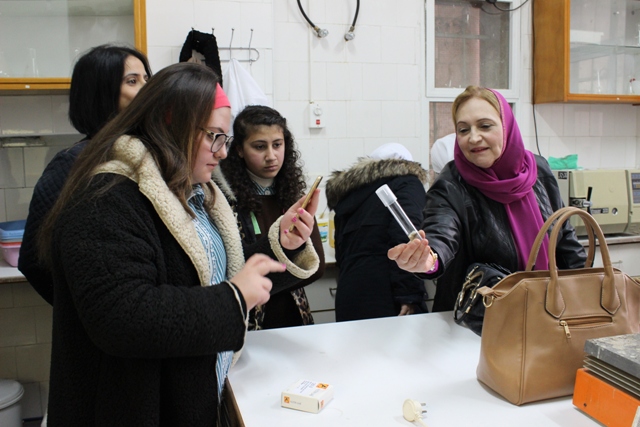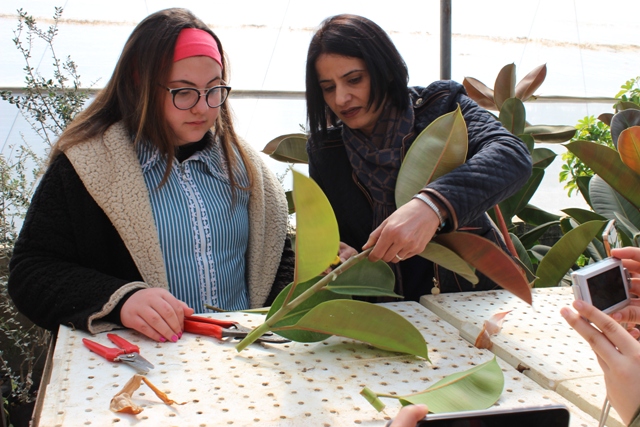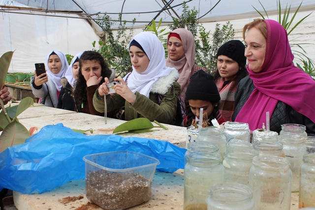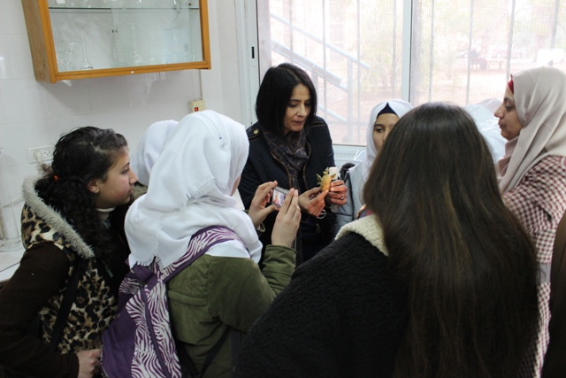 و تأتي هذه الزيارة ضمن مشروع تقوم به الطالبات بهدف التعرف على طريقة الإكثار الخضري في النبات حيث توجهت الطالبات إلى مشتل الكلية للقيام بالتطبيق العملي على إكثار النباتات بالعقل و الترقيد هوائي و أرضي و زراعة الأنسجة بإشراف رئيسة قسم الإنتاج النباتي د.هبة الفارس و د.حسان أبو قاعود.