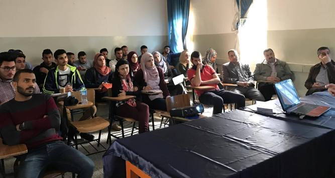 نظمت رئيسة قسم الإنتاج النباتي في كلية الزراعة والطب البيطري د. هبة الفارس و أ. فيصل شريم ود. منقذ شتيه محاضرة علمية بعنوان " تشخيص مرض التدهور السريع بالزيتون" ،بحضور عميد الكلية الدكتور معن سمارة ومدير دائرة زراعة طولكرم المهندس احمد عبد الوهاب و عدد من أساتذة وطلاب الإنتاج النباتي بالكلية .