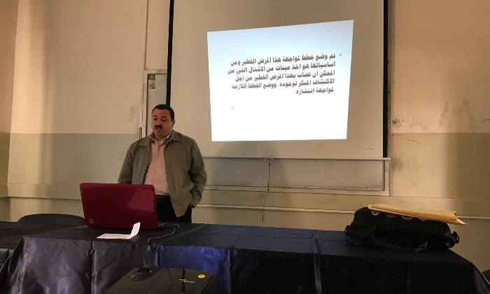 ومن المقرر أن يتم عقد ورشة عمل للتعرف على كيفية الكشف على المرض في الحقول وكيف يتم اخذ العينات الى المختبر وفحصها بالاجهزة المتوفرة لدى دائرة الزراعة.
