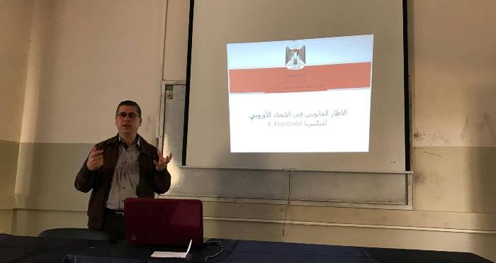 حيث ألقى المحاضرة كل من م. احمد فطوم، و م. راغب كميل، و م. أيمن حجازي و م. سلامة شبيب، الذين قدموا شرحا مفصلاً عن تاريخ المرض الذي تسببه بكتريا عصوية اكسيليلا فاستيديوزا التي تقتل النباتات المصابة عن طريق منع حركة العصارة في الاشجار ، مؤكدين انه لم تسجل حالات مرضية منتشرة في فلسطين، فيما انتشر المرض على نطاق واسع في بعض الدول الاوروبية وحوض البحر المتوسط مما أدى إلى خسائر فادحة في قطاع الزيتون كالتي حدثت في ايطاليا واسبانيا والمغرب،وتعتبرهذه المحاضرة كفرصة للتعريف عن المرض وسبب تسميته وطرق الوقاية منه والكشف المبكر عنه ، وذلك من خلال التحليل المخبري .