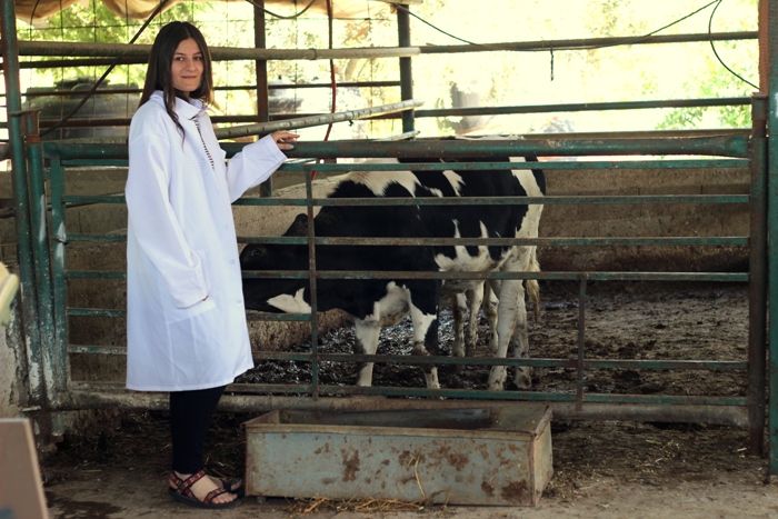 الطالبة سندس ياسين من مدينة شفا عمرو، سنة ثالثة ومن المتوقع تخرجها بعد سنتين، توضح أن نسبة كبيرة من مربي الحيوانات والتي تعمل خلال ساعات النهار هي من فئة النساء لذلك برزت الحاجة إلى طبيبات بيطريات خاصة أننا في مجتمع شرقي ترتاح فيه المرأة للتعامل مع طبيبة بيطرية تستمع إلى نصائحها وترعى حيوانات مزرعتها ، وبالرغم من خوفها في البداية من التعامل مع الحيوانات إلا أنها أحبت أن تكسر هذا الحاجز، فدخلت كلية الزراعة والطب البيطري في جامعة النجاح الوطنية خاصة أن الكلية تتمتع بمستوى أكاديمي عالٍ وهذا ما لامسته خلال أعوامها الثلاث.