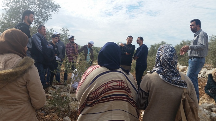 وتم خلال الجولة العلمية زيارة عدة مواقع في منطقة دير الغصون في محافظة طولكرم من أجل الإطلاع على أهم الأنشطة البحثية التطبيقية المنفذة من قبل أريج ومديرية زراعة طولكرم بهدف التكيف والتخفيف من آثار التغير المناخي. حيث إطلع الطلبة على مشاهدات حقلية لـطرق الري الحديثة بواسطة الري بشبكات التنقيط ذات الضغط المتوازن (المنظم) في زراعات الخضار المحمية من أجل إدارة إستخدام و تقليل إستهلاك المياه ، وكذلك تم زيارة بعض المواقع التي نفذ بها أنشطة تتعلق بالحصاد المائي لحقول الزيتون ومشاهدات ري تكميلي للزيتون.