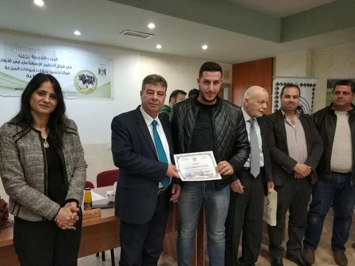 افتتح عطوفة وكيل وزارة الزراعة م عبد الله لحلوح و عميدة كلية الزراعة و الطب البيطري د.هبه الفارس و مدير بيطرة محافظة نابلس د.احمد جرادات الحفل الختامي لدوره التلقيح الاصطناعي و التحسين الوراثي في الابقار المنعقدة في مركز الشهيد ظافر المصري بنابلس والتي استمرت من 17/2/2019 حتى 10/3/2019 تحت رعاية مصنع دانا للادوية.