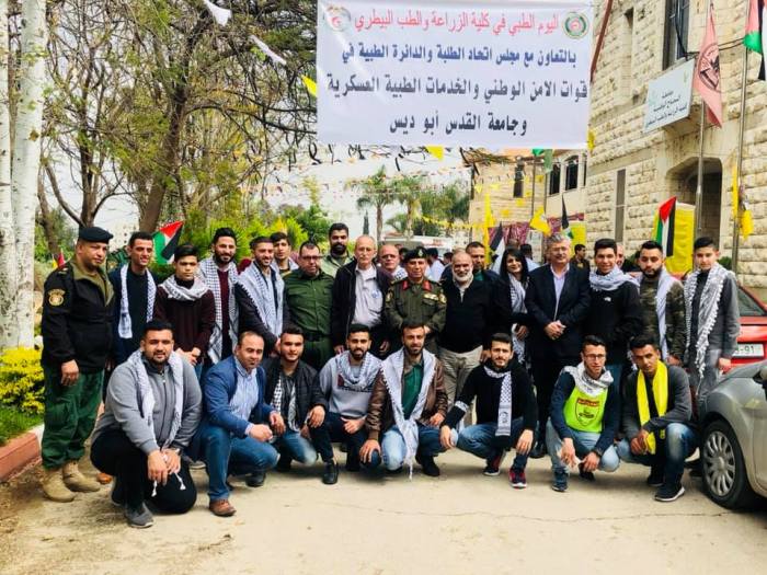 افتتح سيادة العميد مهندس زاهي سعادة قائد منطقة طولكرم و الدكتورة هبه الفارس عميدة كلية الزراعة و الطب البيطري و السيد حمدان سعيفان امين سر حركة فتح اقليم طولكرم والعقيد طبيب زياد العتبة مدير الخدمات الطبية العسكرية اليوم الطبي المجاني الذي نظمه مجلس اتحاد الطلبة في كلية الزراعة والطب البيطري جامعة النجاح الوطنية طولكرم بالتعاون مع الدائرة الطبية قوات الامن الوطني والخدمات الطبية العسكرية وطلاب جامعة القدس ابو ديس كلية التمريض .
