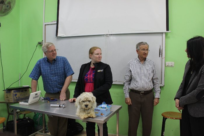و قدم د. لويس كوانتس محاضرات نظرية و تدريب عملي تناول فيه فحص الحيوانات الصغيرة ، و د. ديفيد لاين محاضرة عملية عن الامراض الجلدية في الحيوانات الصغيرة و أهميتها لسلامة الانسان و الحيوان، كما تناولت د. ليندزي مشاكل الاسنان في الحيوانات الصغيرة.