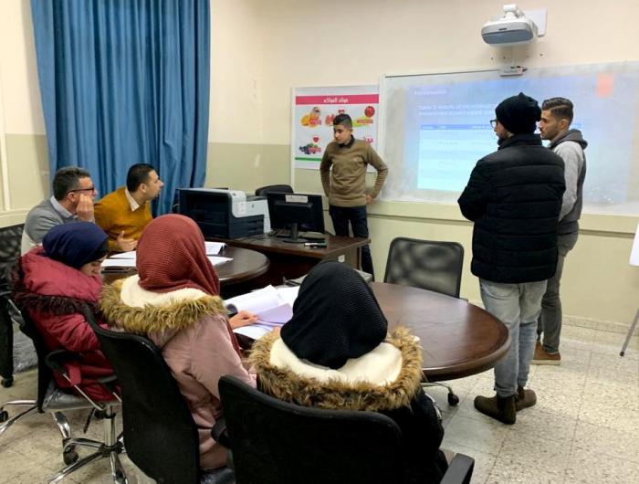 ناقش طلبة قسم التغذية والتصنيع الغذائي مشاريعهم التي تم تنفيذها خلال الفصل الدراسي الاول في مساق حفظ وتصنيع الاغذية وبالشراكة مع عدد من شركات القطاع الخاص ضمن مشروع تطوير برامج الكلية والممول من وزارة التعليم العالي – وحدة تطوير البرامج - حيث يهدف المشروع الى ربط الخريج بسوق العمل وتم توقيع عدد من مذكرات التفاهم واتفاقيات التعاون مع مجموعة من شركات الصناعات الغذائية بهدف إتاحة الفرصة للطلاب للتعلم باستخدام أساليب جديدة مثل التعلم التجريبي والتعلم بالمشاريع.