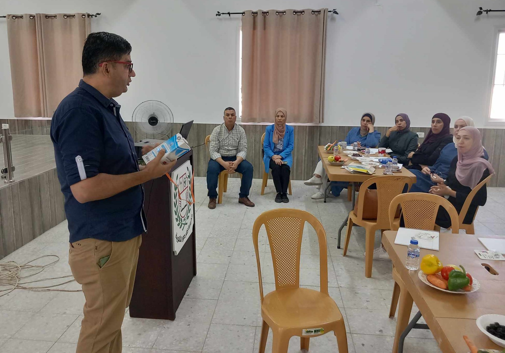 و بدوره تحدث المشرف الصحي في مديرية التربية والتعليم في المحافظة أ.مراد شلبي حول كيفية إعداد وجبات غذائية صحية تلبي احتياجات الطلبة،كما ناقش زملاؤه أ.فراس عواد وأ.إيناس أبو صفا أهداف ومخرجات البرنامج وأليات تطبيق المعرفة التي تضمنتها اللقاءات.