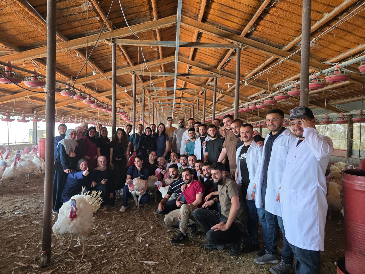 نظمت دائرة الطب البيطري / جامعة النجاح الوطنية زيارة ميدانية لطلبة السنة الرابعة إلى مزرعة متخصصة بتربية دجاج الحبش (الرومي) في بلعا ،تأتي هذه الزيارة ضمن أنشطة مساق "أمراض الدواجن" بإشراف د.نصر جلبوش، سعيًا لتعزيز المهارات التطبيقية لدى الطلبة في مجالي تشخيص الأمراض وإدارة صحة القطعان.
